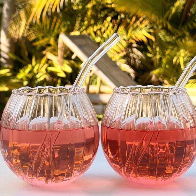 כמות של זוג כוסות זכוכית פסים וקשית שקופה
