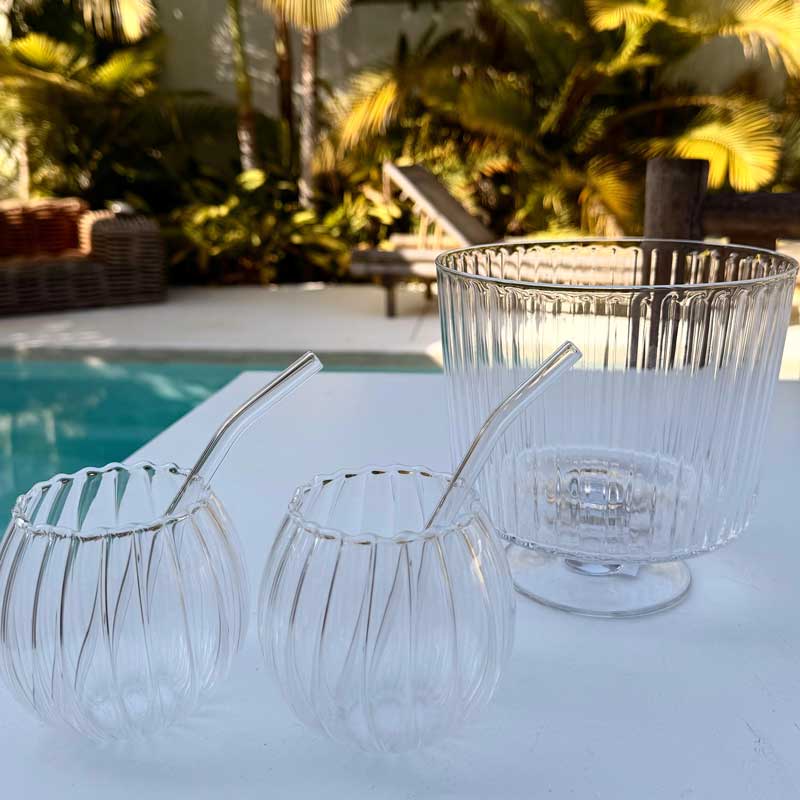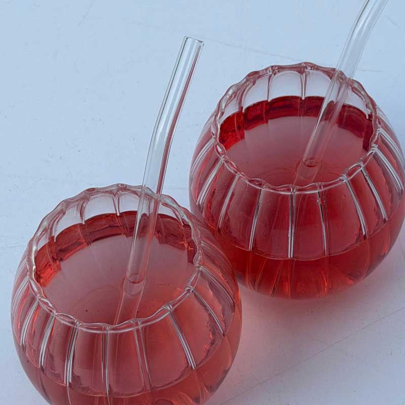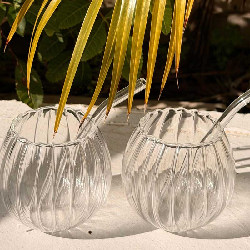 / זוג כוסות זכוכית פסים וקשית שקופה